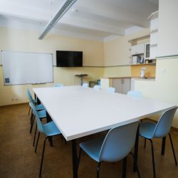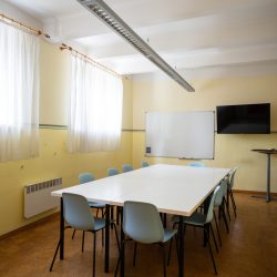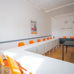 Učebny se nachází v 1. patře kancelářského a obytného domu přímo na náměstí Míru.
